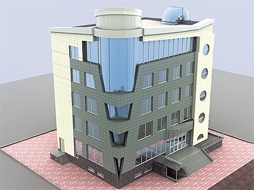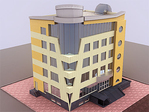 Экстерьерная 3D визуализация административно-торгового центра в г. Винница, с целью подбора облицовочного материала и цветового решения фасада